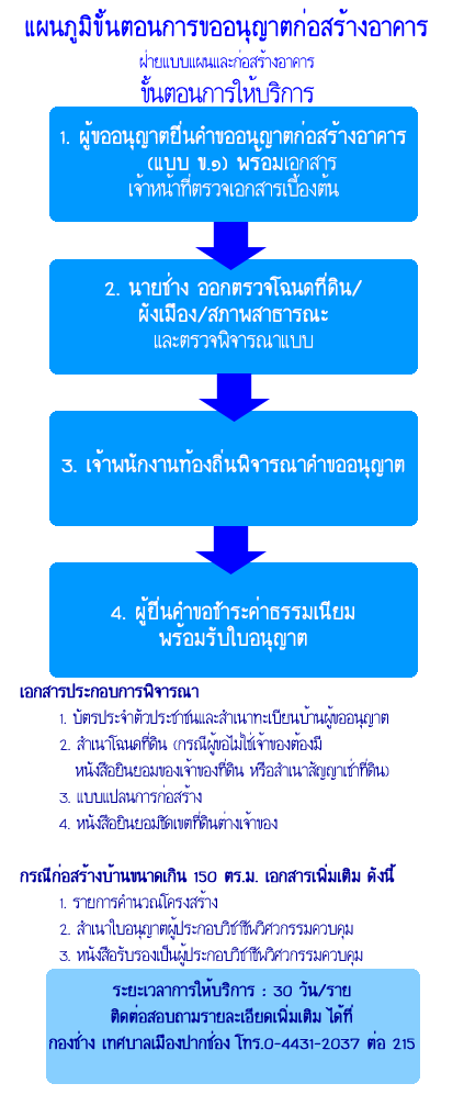 แผนภูมิขั้นตอนการขออนุญาตก่อสร้างอาคาร
