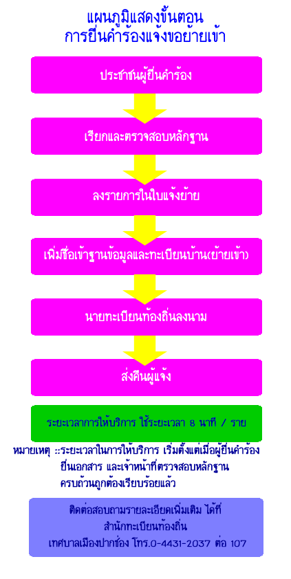 แผนภูมิขั้นตอนการยื่นคำร้องแจ้งขอย้ายเข้า