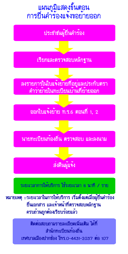 แผนภูมิขั้นตอนการยื่นคำร้องแจ้งขอย้ายออก