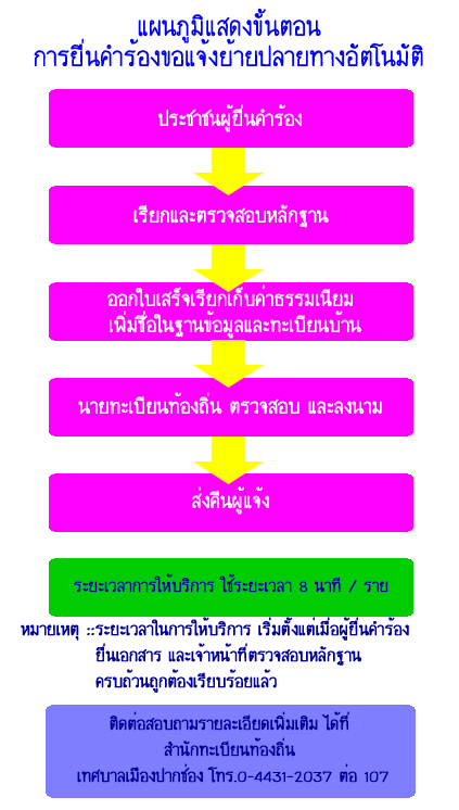 แผนภูมิขั้นตอนการยื่นคำร้องขอแจ้งย้ายปลายทางอัตโนมัติ