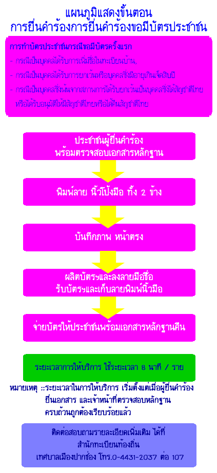 แผนภูมิขั้นตอนการยื่นคำร้องขอมีบัตรประชาชน