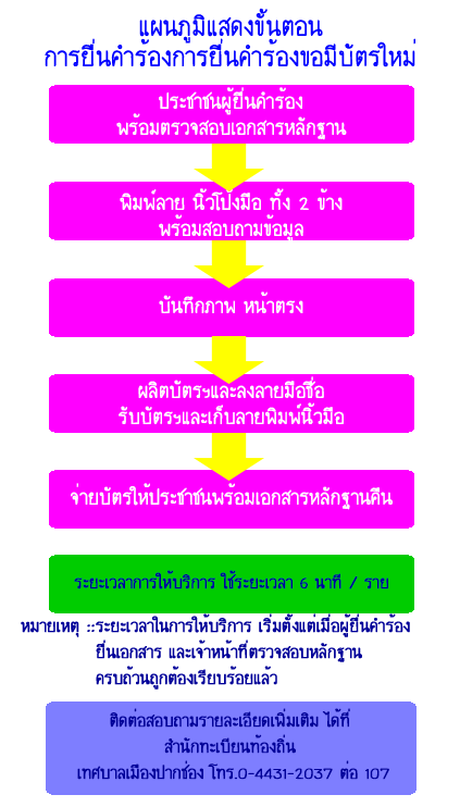 แผนภูมิขั้นตอนการยื่นคำร้องขอมีบัตรประชาชนใหม่