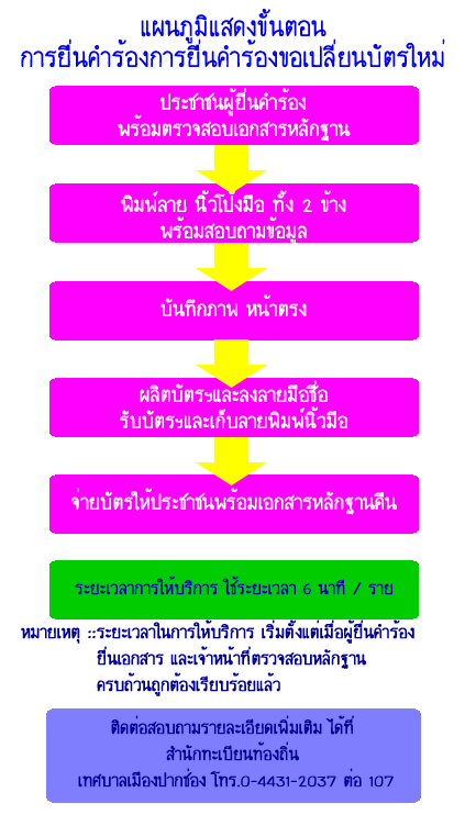 แผนภูมิขั้นตอนการยื่นคำร้องขอเปลี่ยนบัตรใหม่