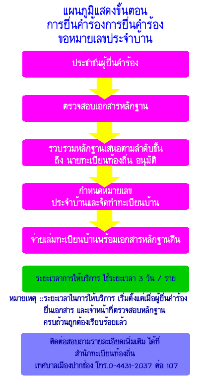 แผนภูมิขั้นตอนการยื่นคำร้องขอหมายเลขประจำบ้าน