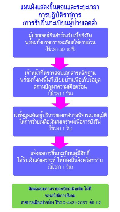 แผนภูมิขั้นตอนและระยะเวลาการปฏิบัติราชการการรับขึ้นทะเบียนผู้ป่วยเอดส์