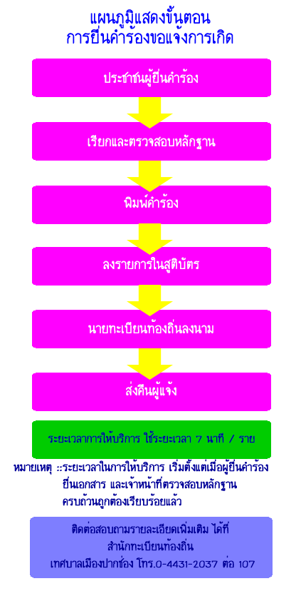 แผนภูมิขั้นตอนการยื่นคำร้องขอแจ้งเกิด