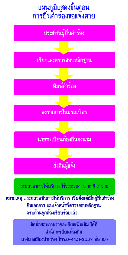 แผนภูมิขั้นตอนการยื่นคำร้องขอแจ้งตาย